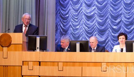 Напутствие выпускникам направил заведующий кафедрой математического анализа, дифференциальных уравнений и алгебры Александр Гринь, а слова благодарности в адрес профессорско-преподавательского состава и администрации ГрГУ имени Янки Купалы прозвучали от отца выпускницы педагогического факультета Елизаветы Хмелевской Сергея Николаевича Семашко.