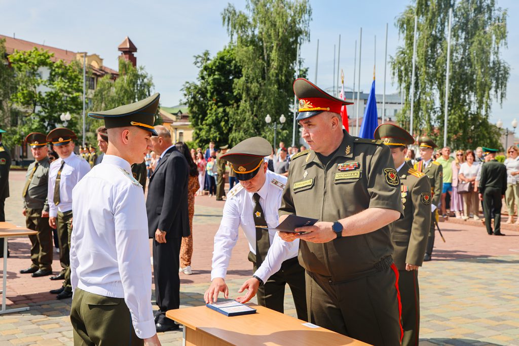 – Молодые офицеры! Пройдет совсем немного времени, и вы вольетесь в ряды белорусской армии. Я уверен, что вы получили богатый опыт во время обучения в Гродненском государственном университете имени Янки Купалы, который поможет вам успешно строить офицерскую карьеру. Выражаю огромную благодарность профессорско-преподавательскому составу, ведь он вложил не только знания, но и душу в своих курсантов, – подчеркнул генерал-майор.