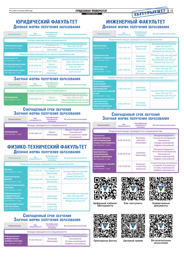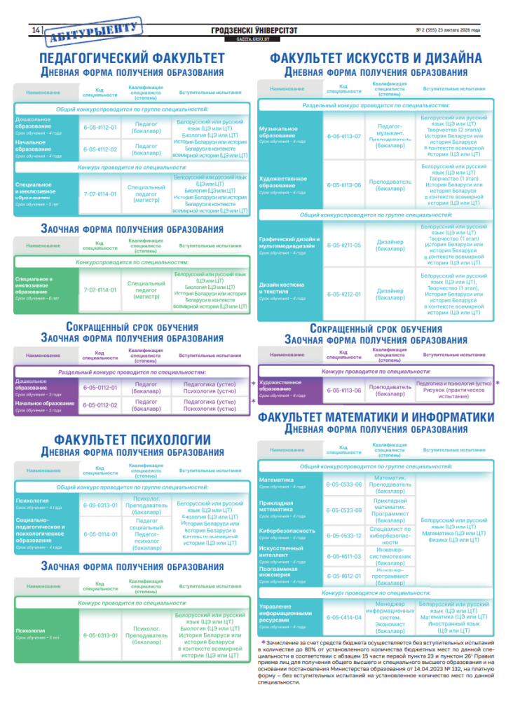 СПЕЦИАЛЬНОСТИ И УСЛОВИЯ ПОСТУПЛЕНИЯ - pr_center · Опубликовано 26.02.2026 · Обновлено 26.02.2026 Поделиться
